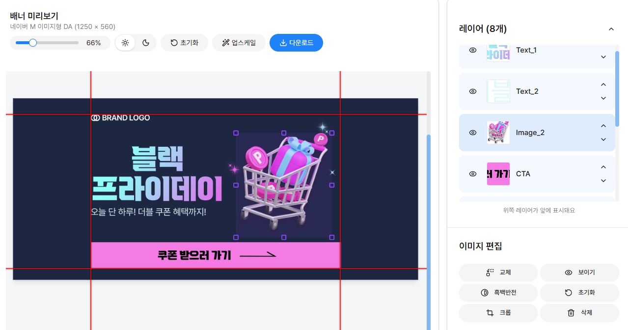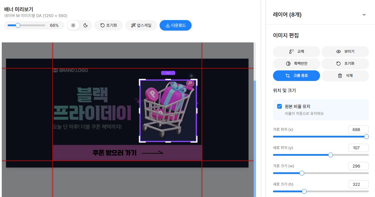 ์ด๋ฏธ์ง ๋ ์ด์ด๋ฅผ ๋๋ธํด๋ฆญํ๋ฉด ํฌ๋กญ ๋ชจ๋๋ก ์ง์ ํ ์ ์์ต๋๋ค.